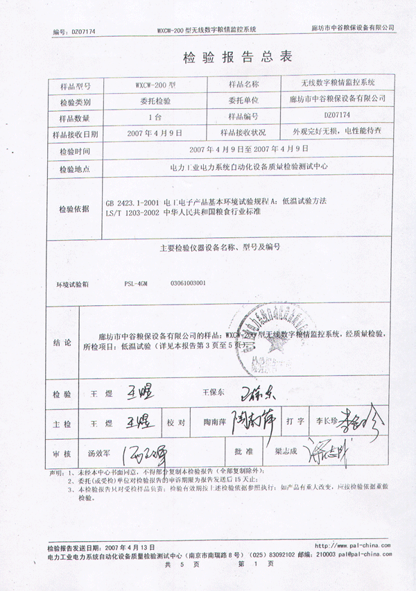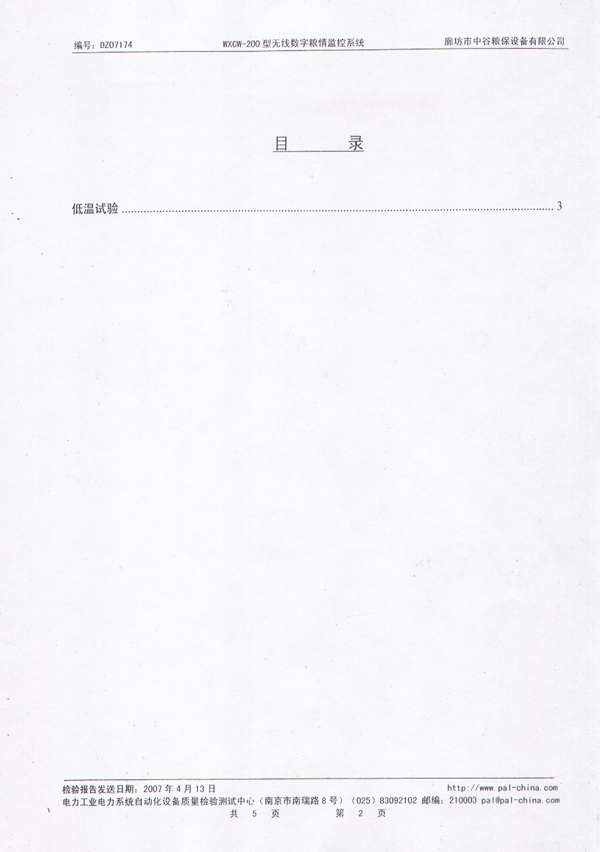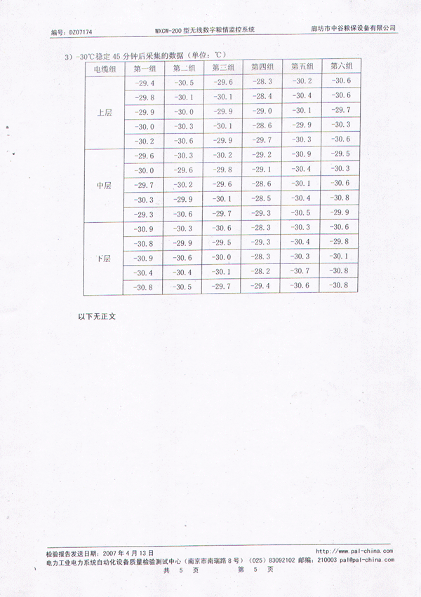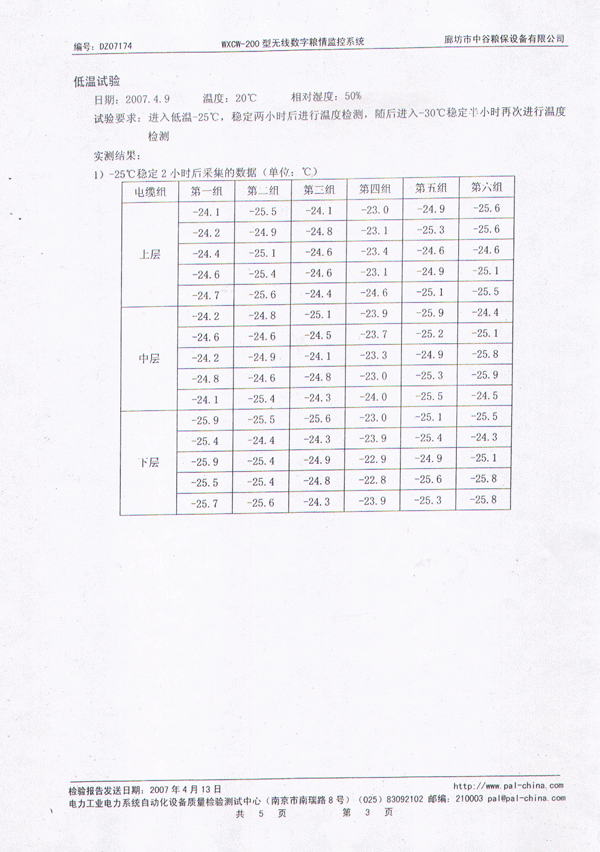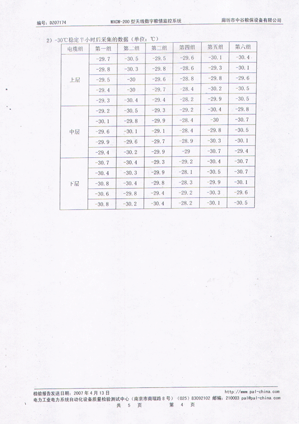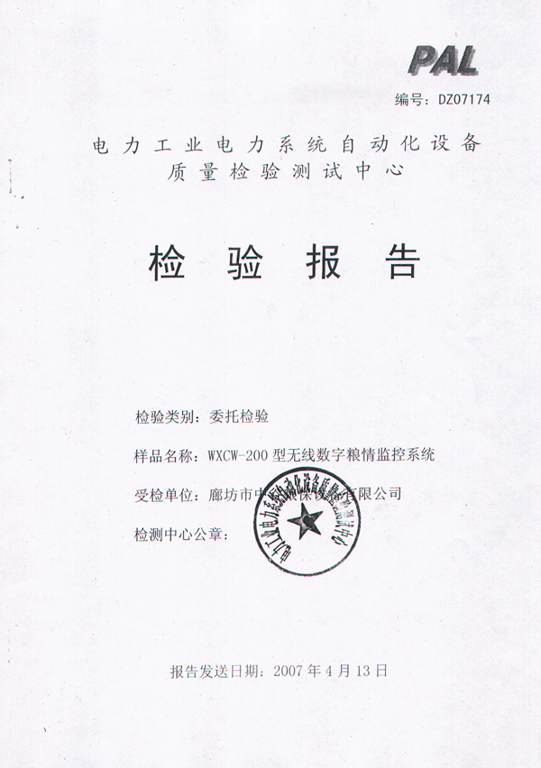 中谷糧保無(wú)線數(shù)字糧情監(jiān)控系統(tǒng)檢測(cè)報(bào)告